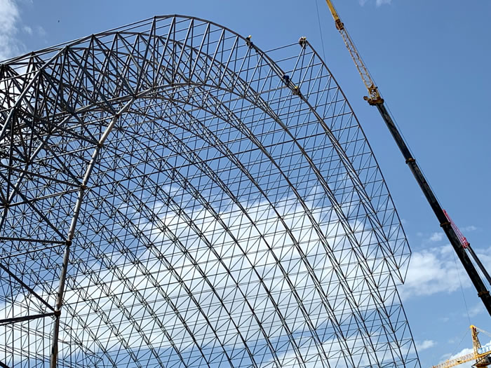 (2)网架加工前应对现场尺寸进行复测,确认无误后方可进行加工、安装;网架制作、运输、安装应遵守《空间网格结构技术规程》JGJ7-2010、《钢网架平度螺栓球节点》JG/T 10-2009、《钢网架平度螺栓球节点用高强度螺栓》 GB/T 16939-2016、《平度钢结构平度工程平度施工规范》 GB50755-2012、《平度钢结构平度工程平度施工质量验收标准》 GB50205-2020。